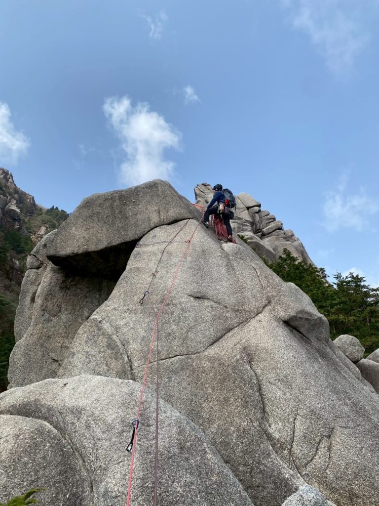 この日のヤグラは湿気っていてクラックに手を差し込むと濡れて登るのに緊張しました。