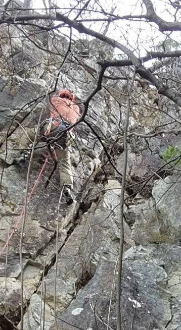 M戸_N藪は、ブリジット、マリリン、鴇草、Maud、ママコのシリヌグイ、マレーネに挑戦しました。最初にトライしたのは難易度が一番低いブリジット。トポでの難易度表記は5.6だったので、ウォーミングアップにちょうどいいと思い挑戦したのが仇となった。苔が多く、終了点付近は濡れておりいつ滑るかわからない状態で、必死に食らいつき無事登ることが出来ました。この課題は、その日のコンデションによって変貌することが分かった。次に挑戦した、Maudの5.8の方が簡単に感じました。