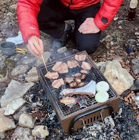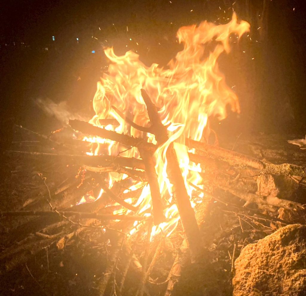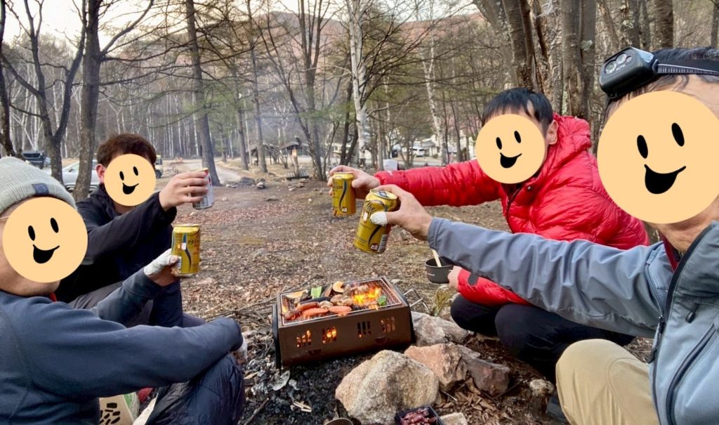 周りのキャンパーに負けじと必死に薪を集め、おそらく我々の焚火の炎が一番大きかったです。大人の本気を見せつけました。