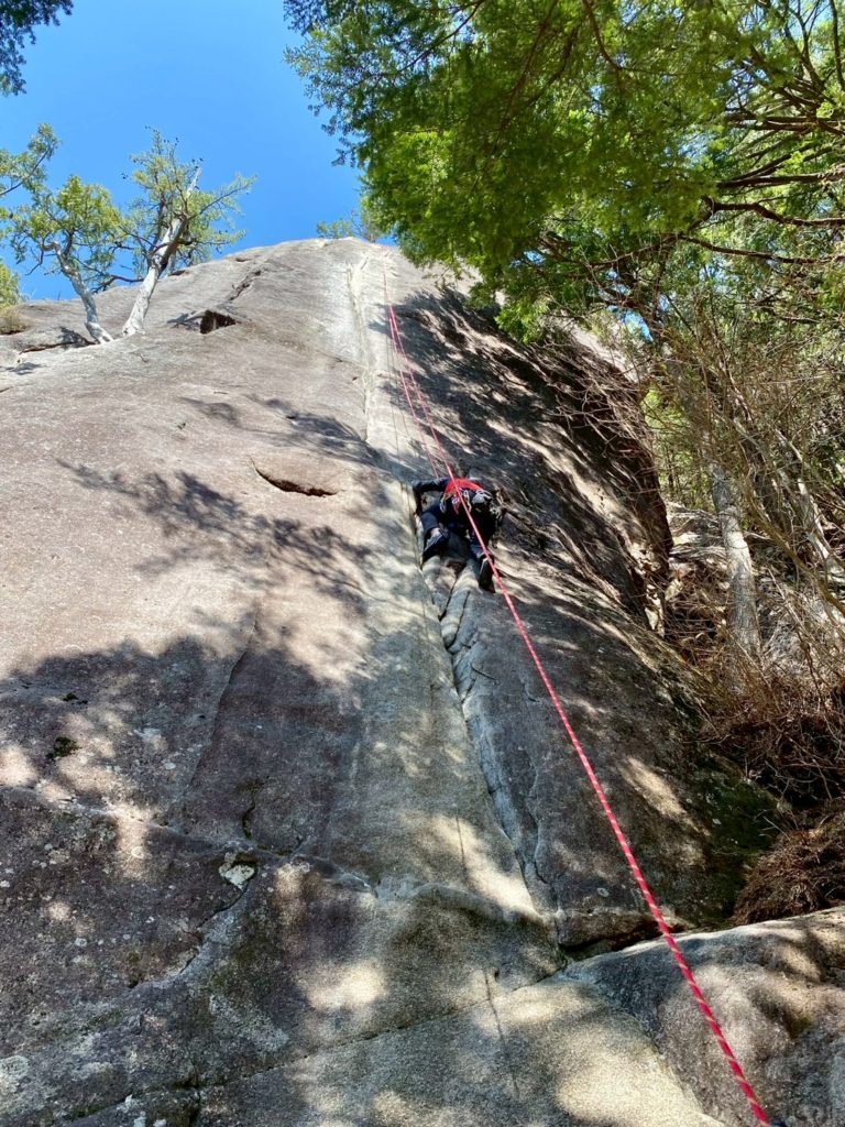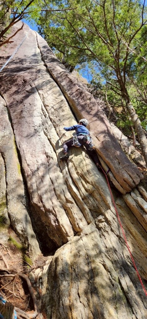 私の初の外岩クラックは愛情物語でした。まず、準備のテーピングで苦戦し、いざトライしてみると、手がうまく決まらなく、足がクラックから抜けないといった、苦戦と葛藤を繰り返し何とか登ることができました。