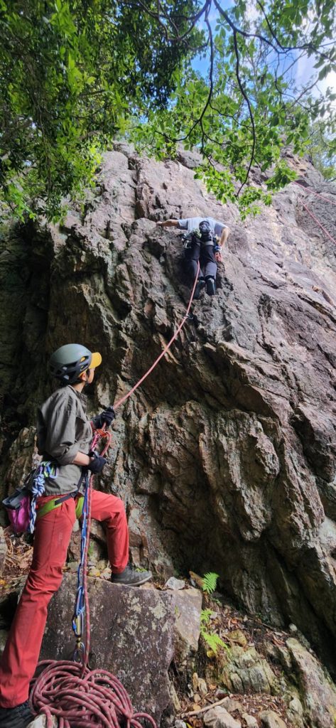 私にとっては、KO_WALLでのビレイ検定に合格してから、初めての外岩でのリードビレイ。ジムでのビレイとは勝手が違い、クライマーがどのタイミングでクリップするのかが分からず、戸惑いながらのビレイでした。 実際、スムーズなロープ操作ができなかったことで、クライマーに不快な思いをさせてしまったのではないかと、自分でも反省点が多く残りました。