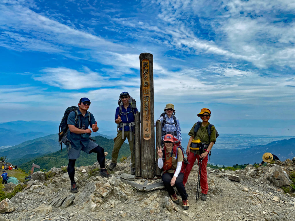 実は、M戸は、密かに下山でモモが攣りそうになっていました。いつもは少しずつ荷物の量を増やしながら回数を重ねて歩荷トレするのですが、今回はいきなり20kgも担いで、山頂で荷物は降ろさずに少し無理しちゃいました笑